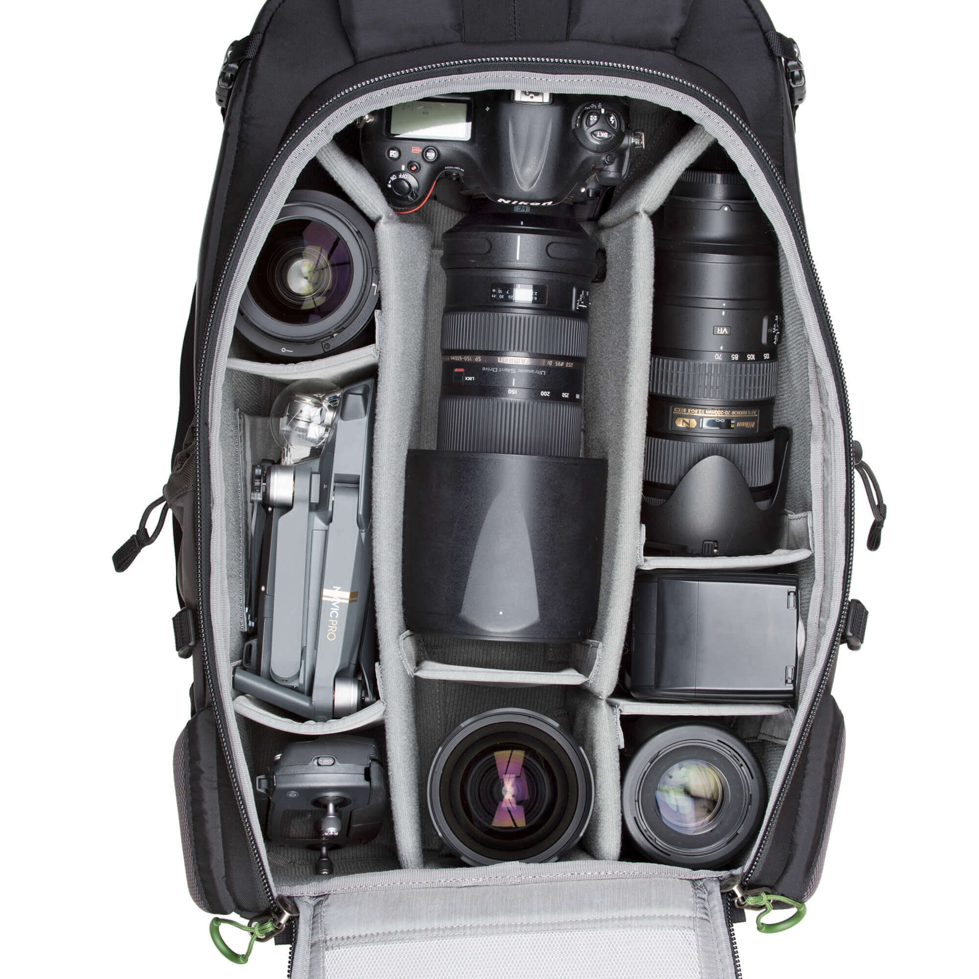 <li> Divisores ajustables para grandes teleobjetivos, equipos fotográficos tradicionales o artículos personales</li>