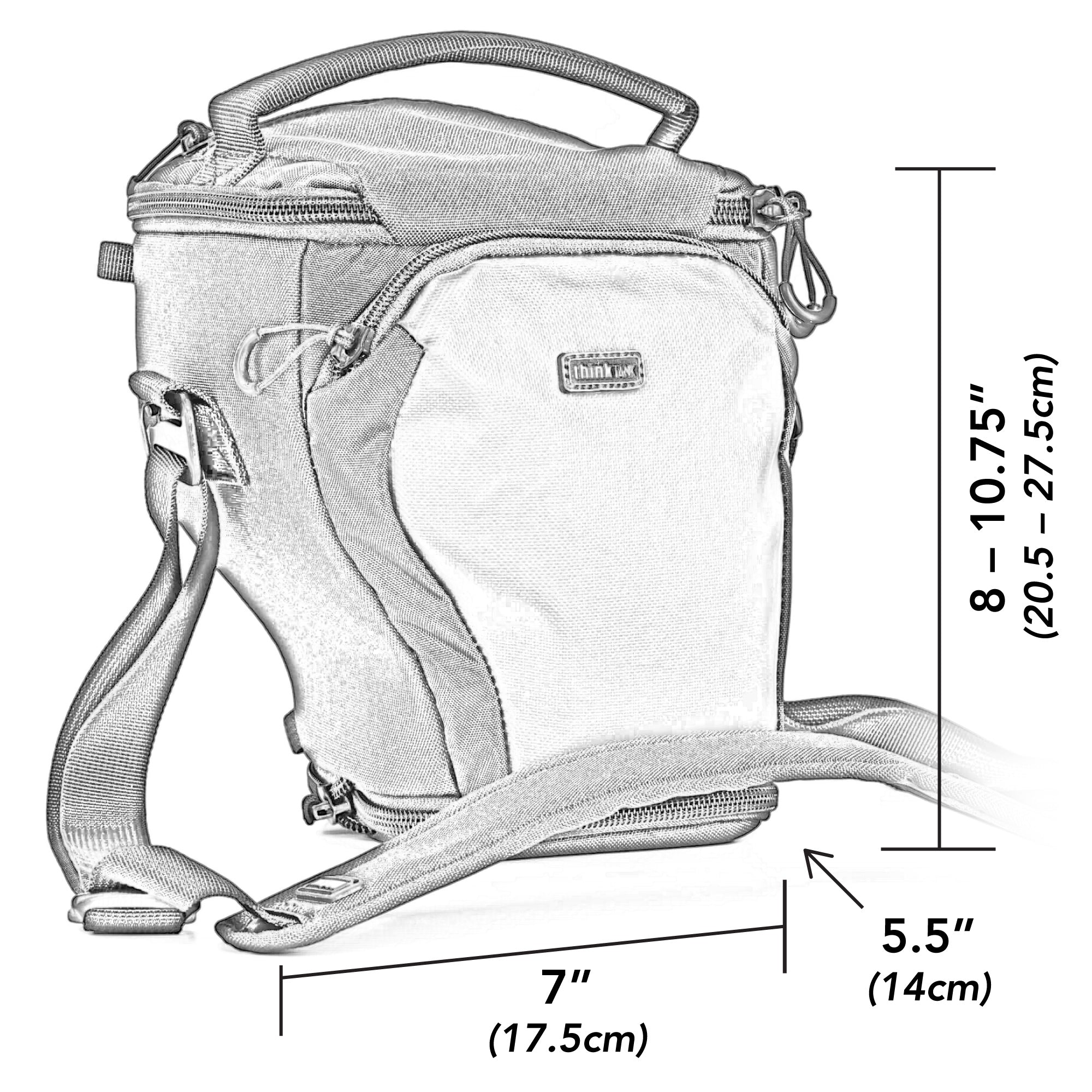 Digital Holster 10 V3 “Pop Down” feature extend to fit with the lens hood in the shooting position or larger lenses like a 24-70mm f/2.8 with its lens hood reversed. Digital Holster 10 V3 Holster lid opens away from the body for convenience Designed to be form-fitting to a standard or gripped camera body with a zoom lens attached Fits a larger compact body with a 24-70mm f/4 attached with the hood reversed. Popped-down, it fits a 24-70mm f/2.8 with its lens hood reversed. Fits a larger compact body with a 24-70mm f/4 attached with the hood reversed. Popped-down, it fits a 24-70mm f/2.8 with its lens hood reversed. Fits a larger compact body with a 24-70mm f/4 attached with the hood reversed. Popped-down, it fits a 24-70mm f/2.8 with its lens hood reversed. Fits a larger compact body with a 24-70mm f/4 attached with the hood reversed. Popped-down, it fits a 24-70mm f/2.8 with its lens hood reversed. Fits a larger compact body with a 24-70mm f/4 attached with the hood reversed. Popped-down, it fits a 24-70mm f/2.8 with its lens hood reversed. Accessory pocket underneath the lid for spare memory cards, lens caps, etc. Removable soft divider included inside to protect camera LCD screen from the camera’s strap Large zippered front pocket for extra accessories A divider is included to accommodate a body with two smaller lenses Zippered pocket on top outside lid for accessories Attachment on back for connection to any Think Tank belt or belt pack, and select backpack waist belts Removable non-slip shoulder strap Add capacity with attachment rail compatible with most Think Tank Modular Pouches Attachment on back for connection to any Think Tank belt or belt pack, and select backpack waist belts YKK® RC Fuse zippers with thumb pulls on sliders Seam-sealed rain cover included