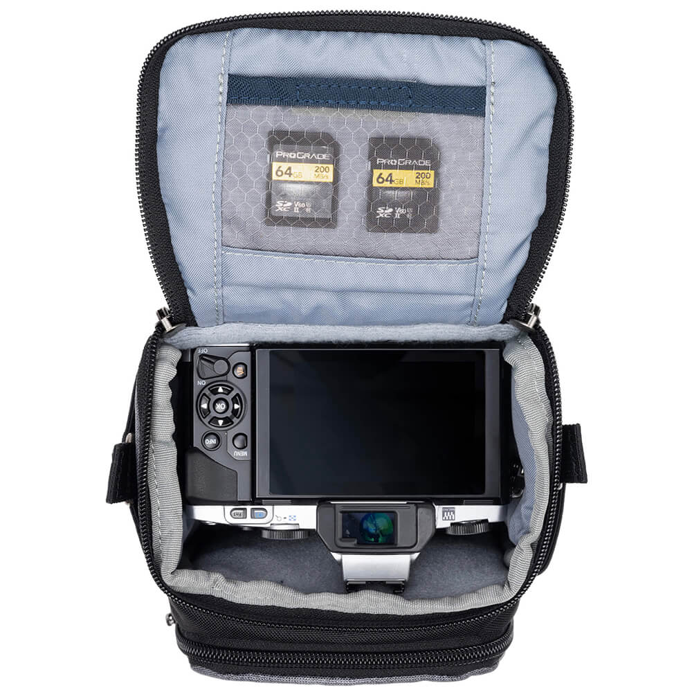 <p>Fits one small to medium point-and-shoot or small size mirrorless body with small telephoto, pancake lens, or small prime attached.</p>
