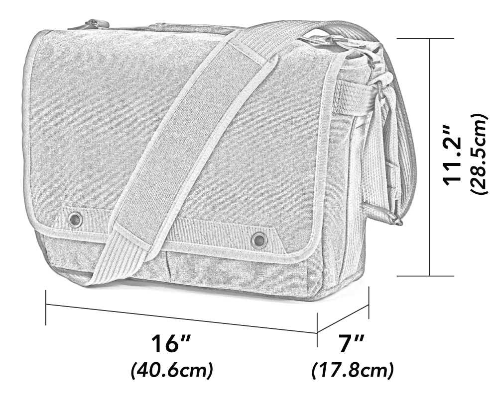 <strong>Dimensiones exteriores</strong><br> 16" ancho x 11,2" alto x 7" profundidad (40,6 x 28,5 x 17,8 cm)<br><br> <strong>Dimensiones internas</strong><br> 15" ancho x 10,5" alto x 6,7" profundidad (38 x 26,7 x 17 cm)<br><br> <strong>Bolsillo para computadora portátil (se adapta a una computadora portátil de hasta 15 "):</strong><br> 14,2" ancho x 9,8" alto x 1,0" profundidad (36 x 25 x 2,5 cm)<br><br> <strong>Peso:</strong><br> 2.8 libras (1,3 kg) incluidos todos los accesorios