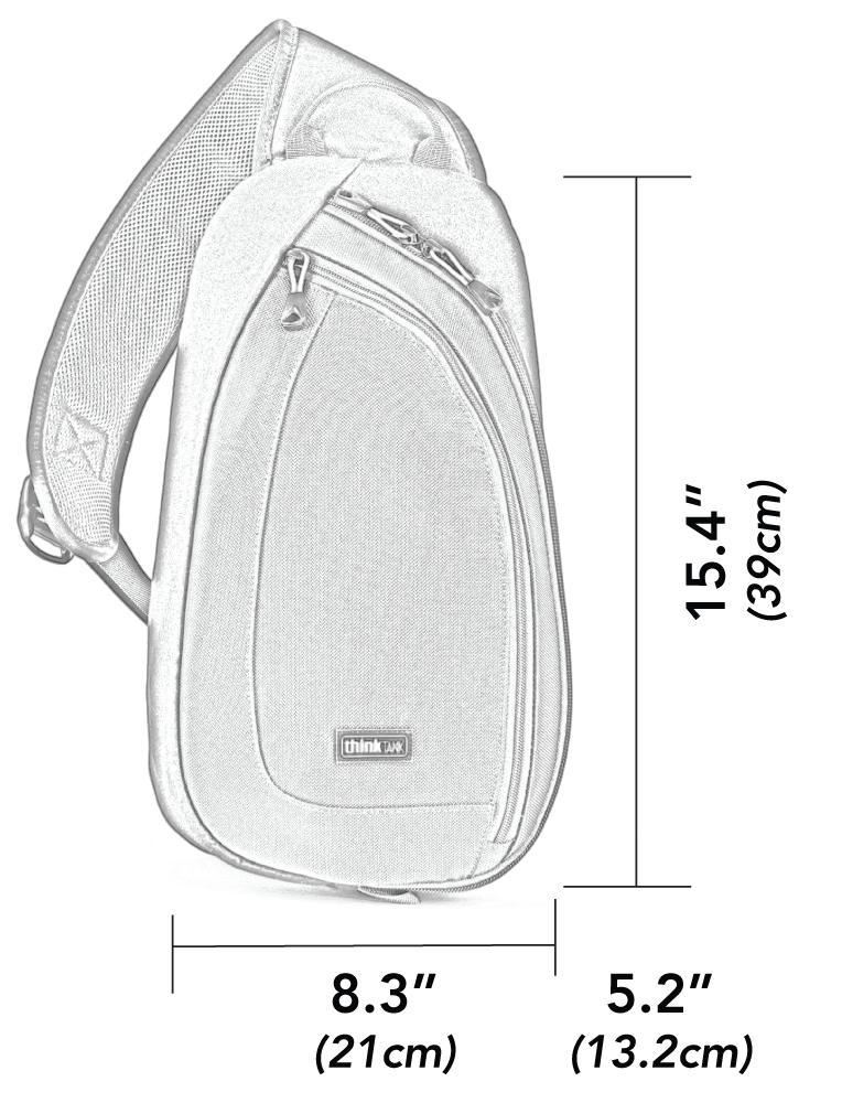 <strong>Dimensiones exteriores:</strong><br> 8,3" ancho x 15,4" alto x 5,2" profundidad (21 x 39 x 13,2 cm)*<br><br> <strong>Dimensiones internas:</strong><br> 7,1" ancho x 12,6" alto x 4,8" profundidad (18 x 32 x 12,2 cm)<br><br> <strong>Compartimento pequeño para tableta:</strong><br> 6,3” x 8,7” x 0,4” (16 x 22 x 1 cm)<br><br> <strong>Peso:</strong><br> 1,0 libras (0,4 kg)<br><br> <strong>Longitud de la correa para el hombro:</strong><br> 35–68.3” (incluye la longitud del producto)<br><br> <strong>Longitud de la correa de estabilidad:</strong><br> 59.3” (incluye la longitud del producto)<br><br> <em>* Tenga en cuenta que el producto se estrecha significativamente y las dimensiones se toman en el punto más grande.</em>