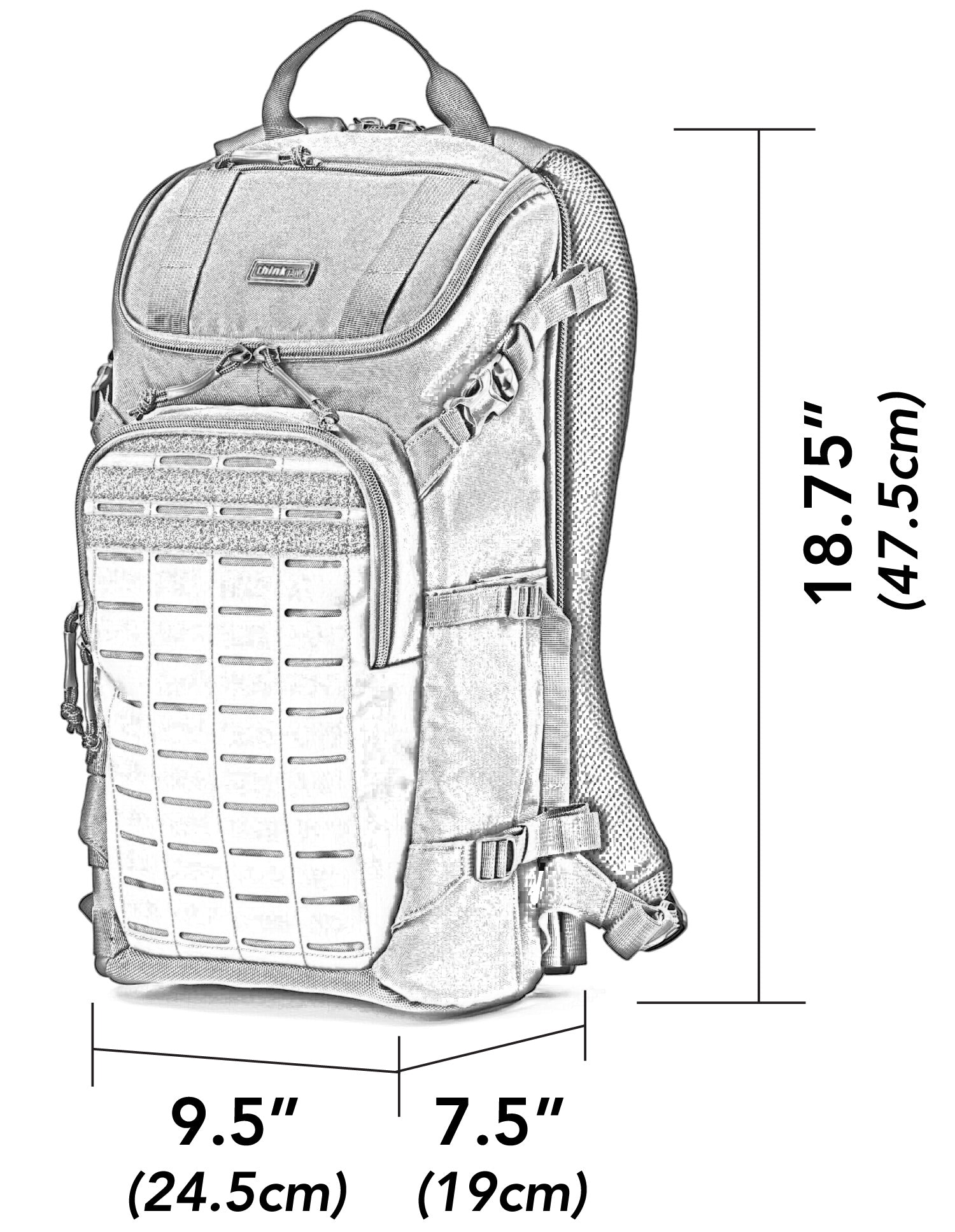 <li>Tactical webbing rails on the side enable you to attach Think Tank modular pouches</li>