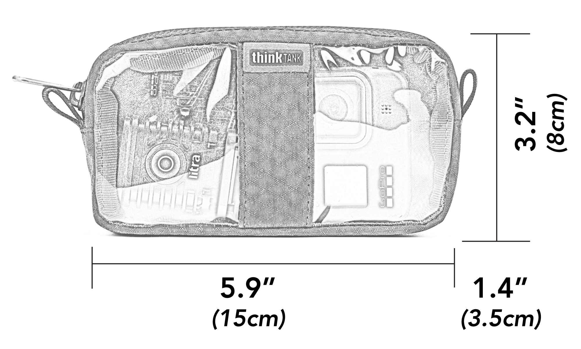 <strong>External Dimensions:</strong><br>5.9” W x 3.2” H x 1.4” D (15 x 8 x 3.5 cm)<br><br>