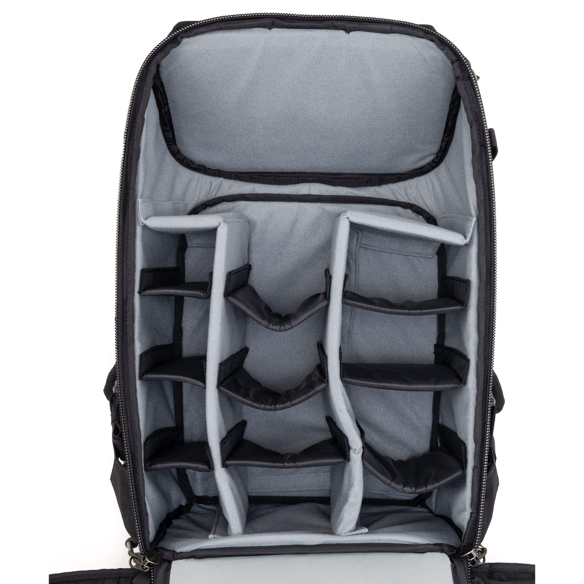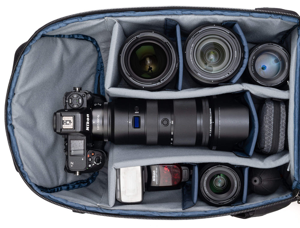 <li>Adjustable dividers accommodate large telephoto lenses, traditional photo gear, or personal items</li>