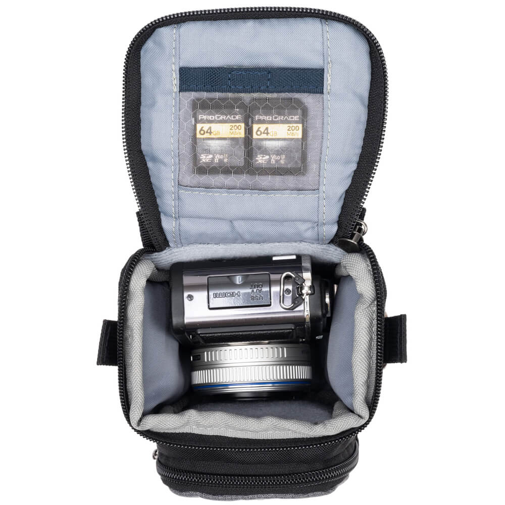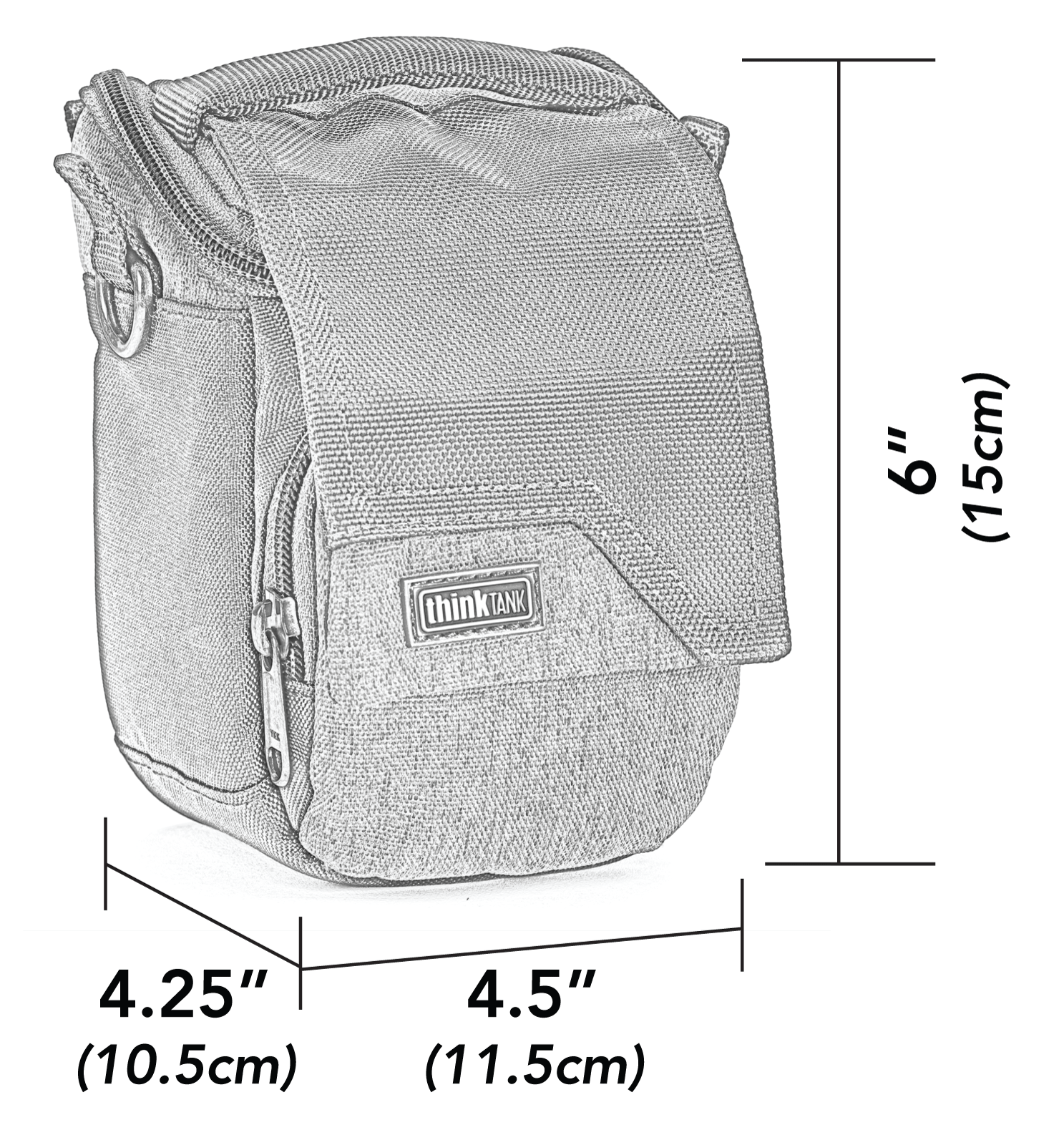 <p>Fits one small point-and-shoot or small size mirrorless body (4/3) with small telephoto or pancake lens attached.</p>