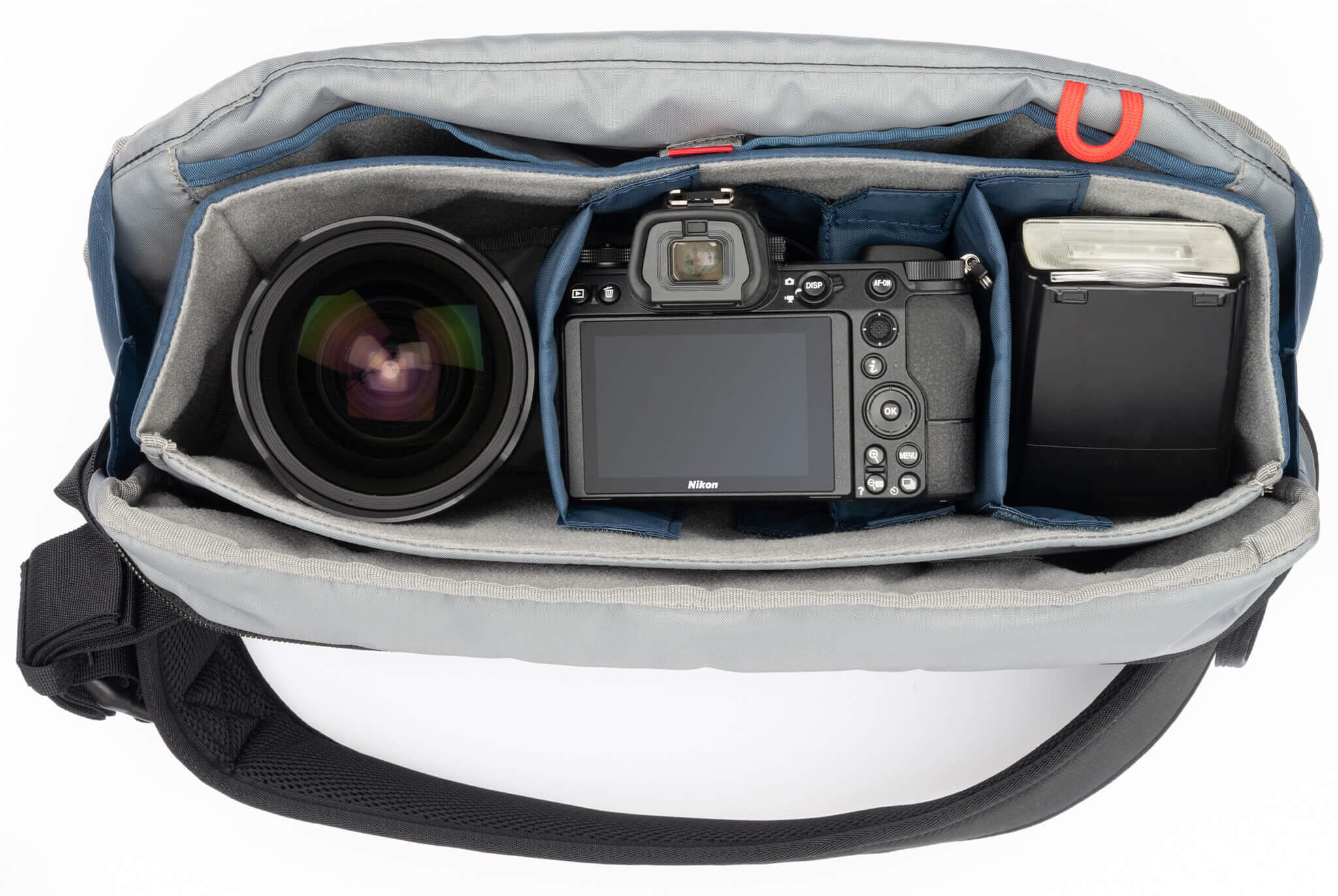 <li>Sling bag shoulder strap with optional tuck-away stabilizer belt</li>
