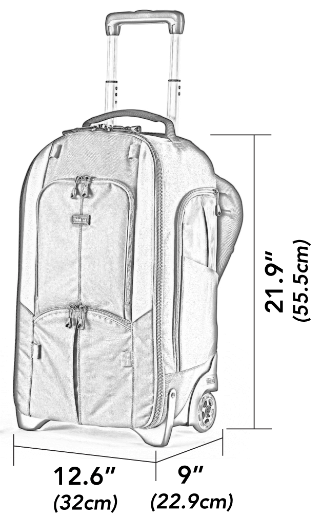<ul> <li>Specially designed interior to maximize gear for carry-on, meets most U.S. and International airline carry-on requirements*</li> <li>Reinforced telescoping handle with rubberized touch points</li> <li>Tripod mount on front panel</li> <li>Dedicated smartphone pocket fits today’s large phones with a 5.5” (14cm) screen size</li> <li>Lockable YKK® RC Fuse zipper sliders (lock not included)</li> <li>Two side water bottle pockets and two side zippered pockets</li> <li>YKK® RC Fuse zippers, ballistic nylon, high-density velex and closedcell PU foam are the highest quality materials in the industry</li> <li>Custom-designed, high-performance, 80mm wheels with sealed ABEC grade 5 bearings for quiet rolling</li> <li>Seam-sealed rain cover included</li> <li>User-replaceable retractable handle, wheels, wheel housings, feet and kick plate extends product life</li> <li>Adjustable dividers allow a customized fit for your DSLR or Mirrorless gear</li> <li>Interior clear zippered pockets for accessories</li> <li>Organizer pocket</li> <li>Hypalon reinforced rear panel for increased durability</li> <li>Shoulder harness pockets, D-rings, daisy chain and adjustable sternum strap</li> <li>Clear business card holder on top panel for identification</li> <li>Compatible with Camera Support Straps (sold separately)</li> </ul> <p><em>*Check with your airline for current carry-on requirements</em></p>